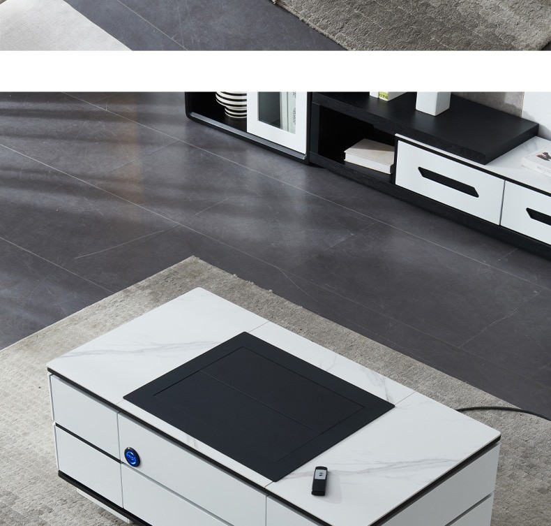 奥左智能茶何テレビキャビネットの軽奢岩板多機能昇降茶テーブル北欧小戸型客間家具セットはテレビキャビネット+インテリジェント茶何+サイドキャビネット【イタリア輸入岩板】