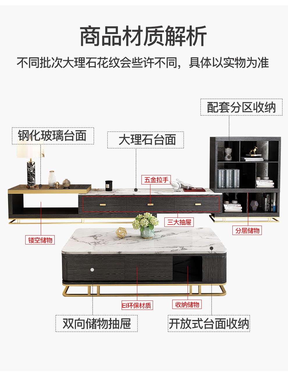 オーストリア左北欧イタリア式の軽奢な大理石のお茶の何テレビの箱の組合せの小さい戸型の客間の家具の1.3メートルの大理石のお茶の何【ピクチャーの価格のブランドのオファー】-京東