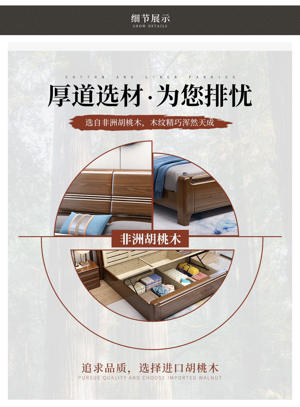 | 商品の名称 | 小木の巣のベッド現代中国式胡桃の木の実木のベッドの1.8 mの小型の部屋型の簡単な契約の主な寝台のダブルベッドの保管物のベッド+マットレス【箱の枠の構造】1800*2000 |