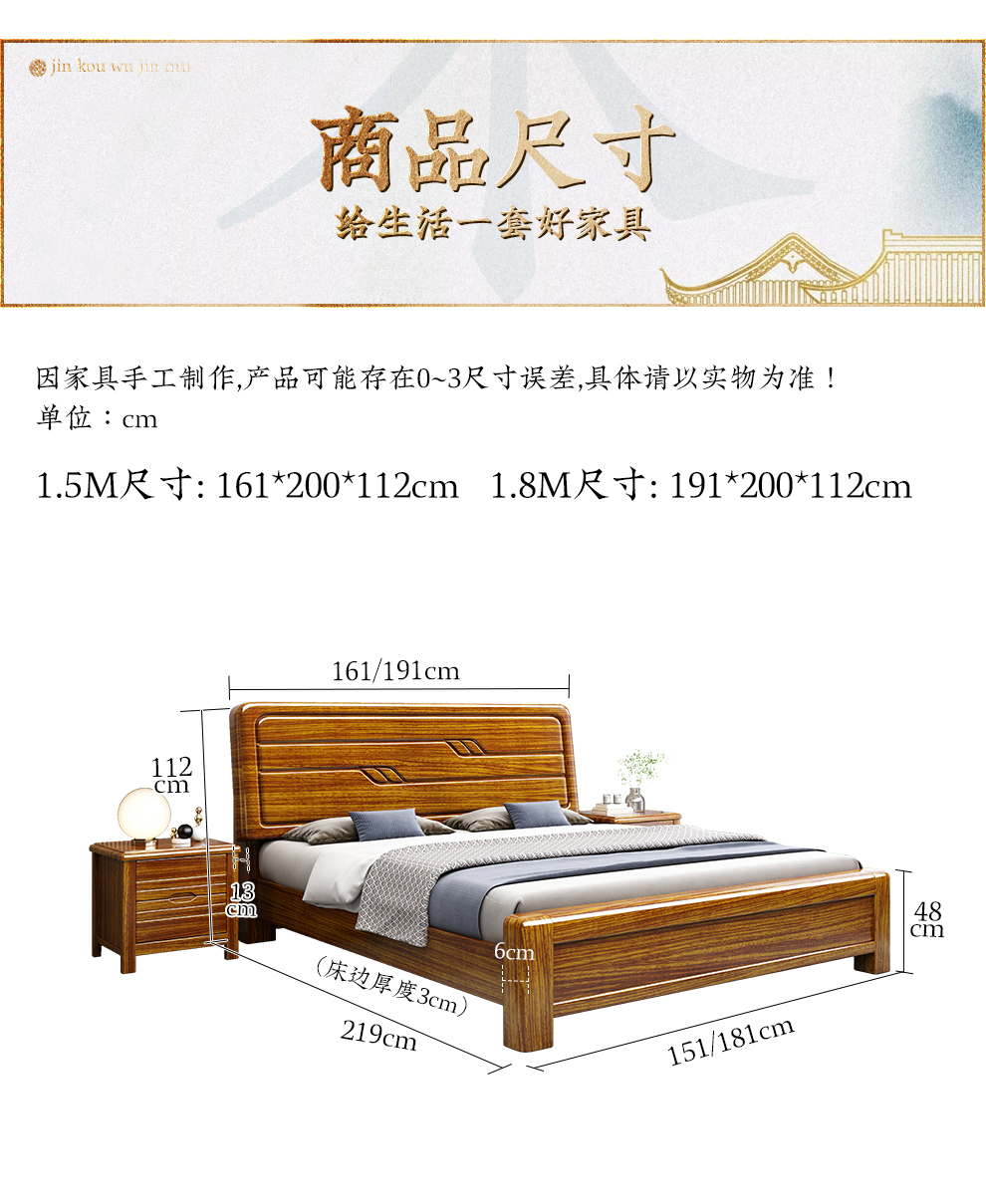 | 商品名称 | 小木の巣のベッドの黒い金の木の実木のベッドの1.8メートルの近代的な中国式の簡単なダブルベッドの主な寝台の1.5メートルの高さの箱の保管物の寝室の結婚ベッド+マットレス【支柱の構造】1500*2000 |