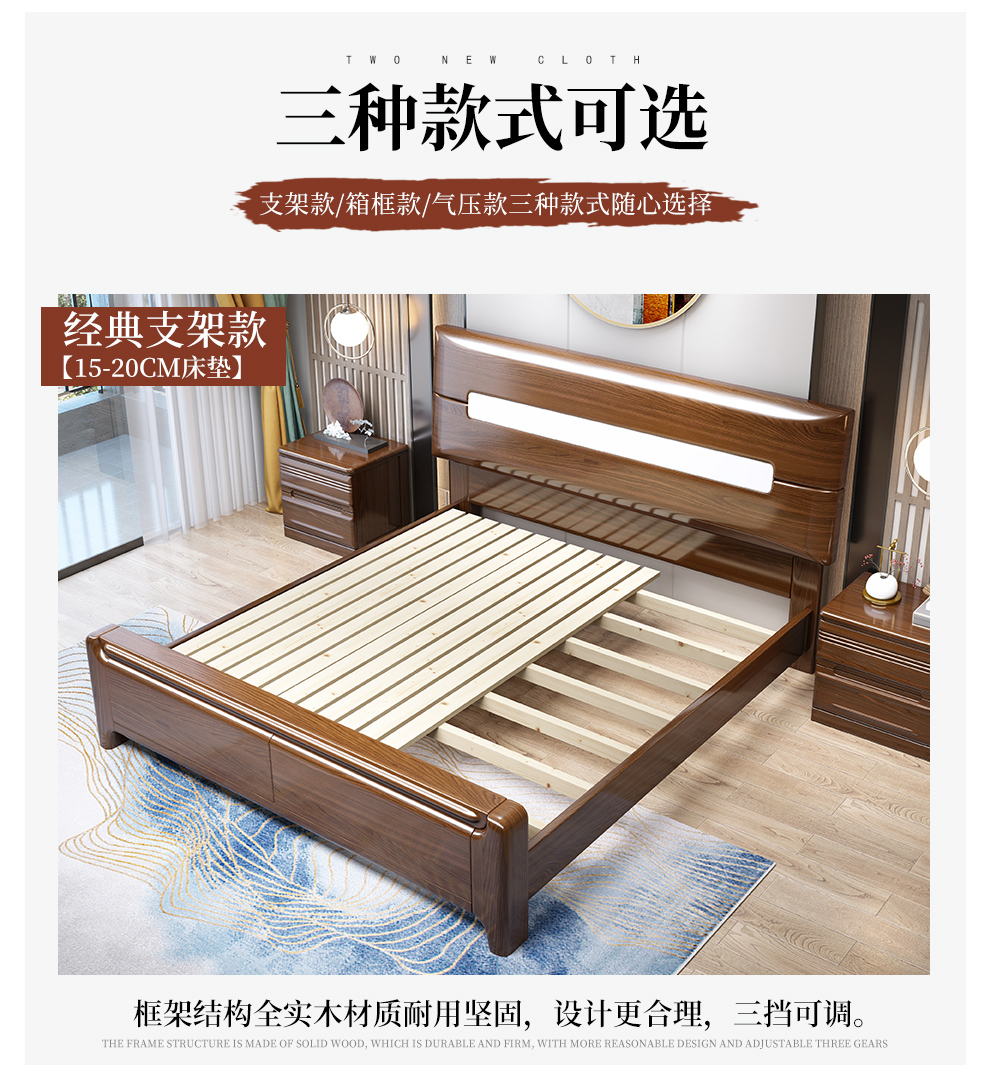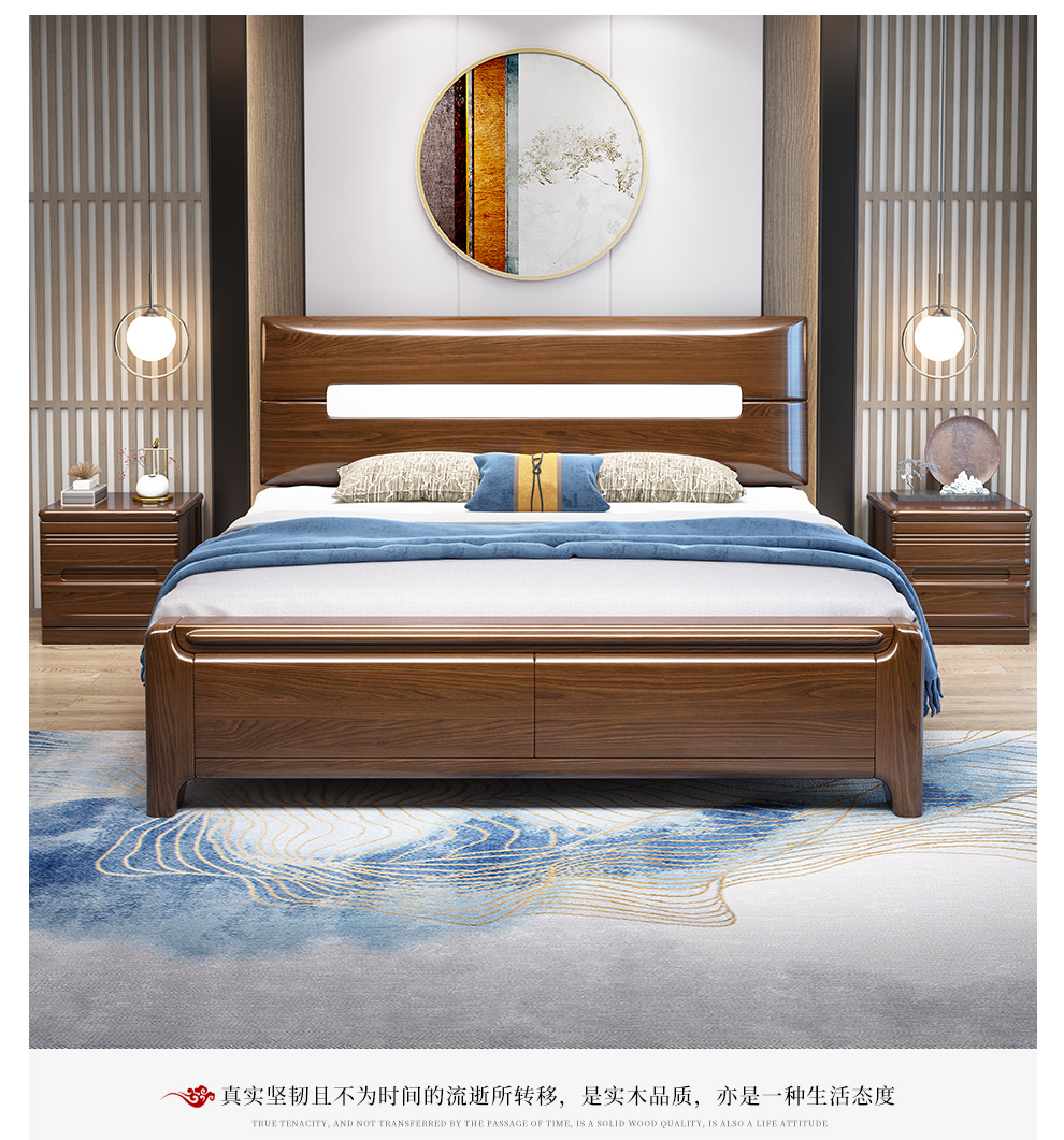 小木窩ベッドの全木ベッドの新しい中国式1.8メートルダブルベッドの胡桃木大床の主なベッドと結婚式ベッドルームの家具のベッド+マットレス+マットレス*1【箱の枠の構造】1800*2000