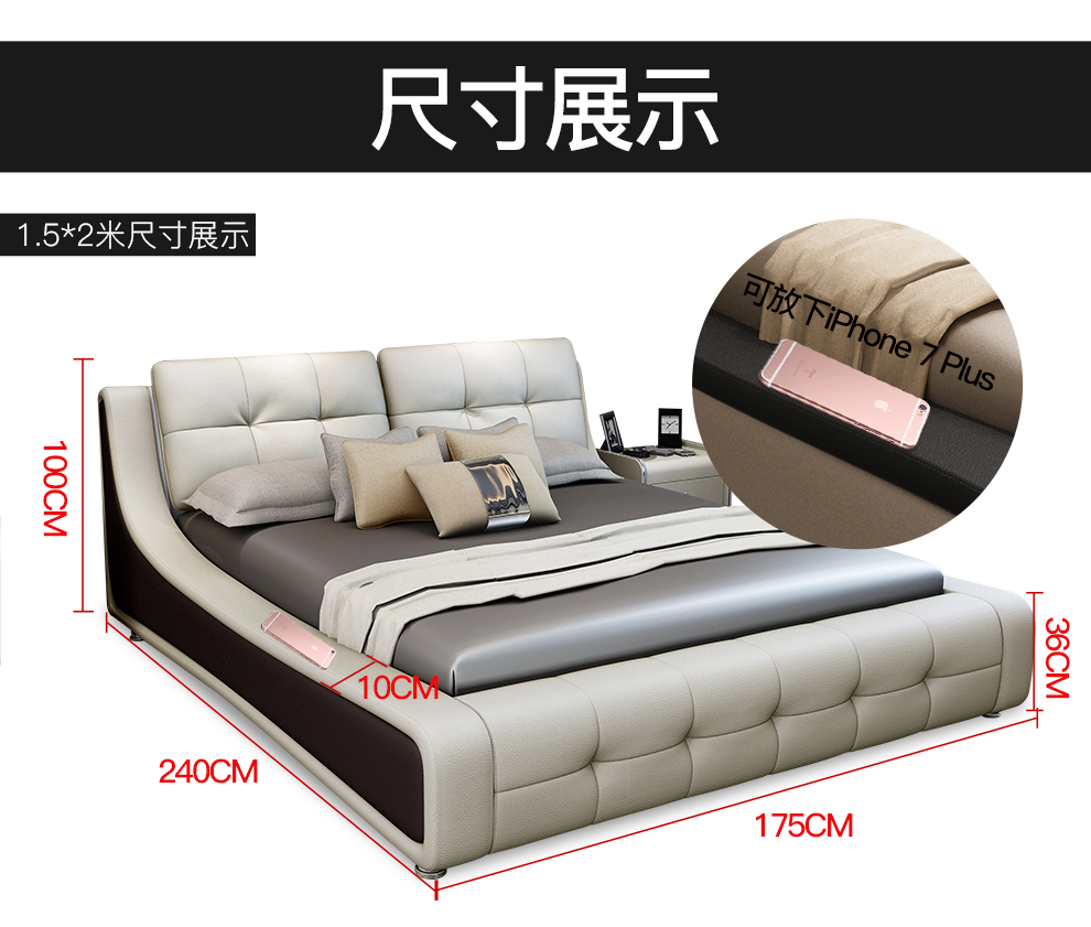 | 商品の名称 | オーストリア左ベッドの皮のベッド北欧ダブルベッドの真皮のベッドは近代的で簡単です。木製フレームのベッドの家具の頭の階の牛皮のベッド(経典の白黒)の1.8*2メートルの本当の木の棚のベッド+6013ゴムのマットレス+キャビネット*2 |