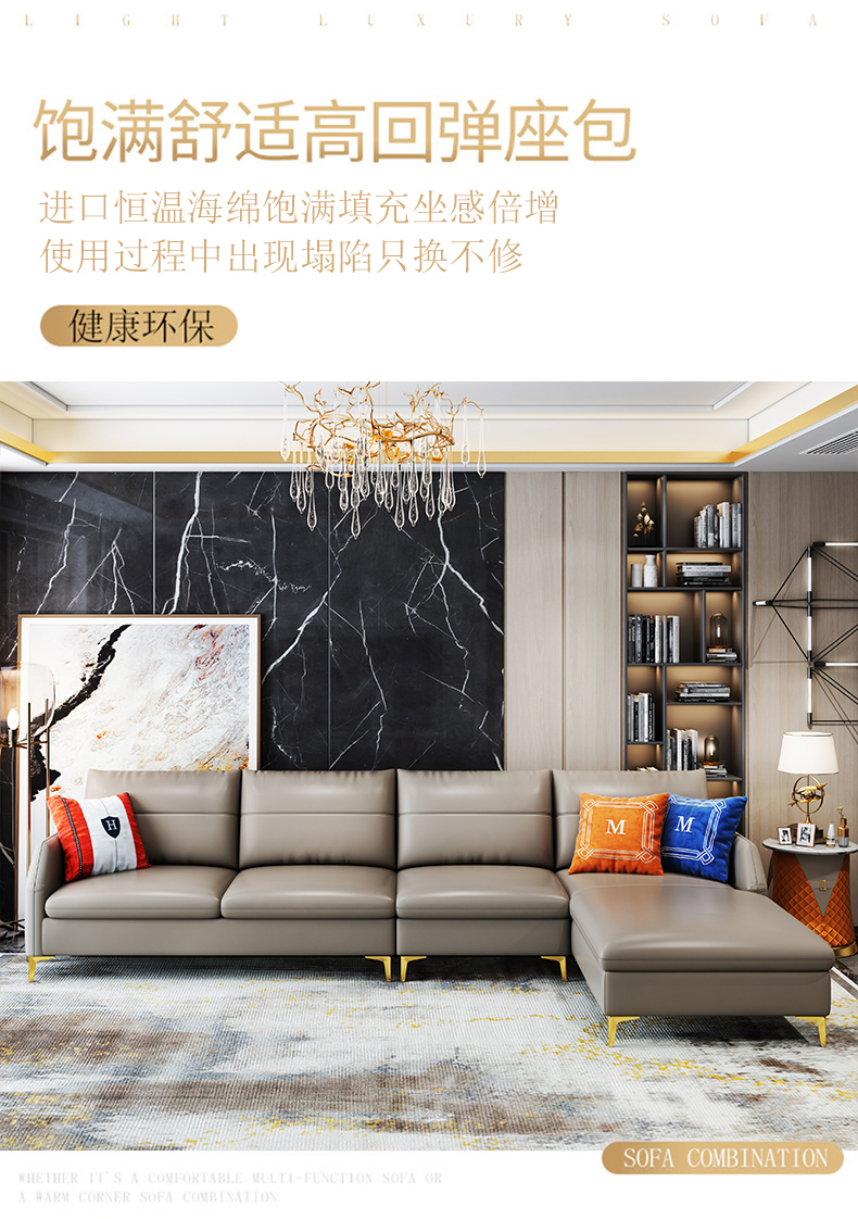 パバサのソファーの皮のソファーイタリア式の軽い贅沢な本革のソファーの角のソファーは簡単に客間L型のソファーを組み合わせてアメリカ式の軽い贅沢な皮のソファーの別荘の家の大きさのソファーの国産のヘッド層の牛皮(輸入の恒温スポンジ+品質保証の10年)を組み合わせて足を踏み入れます。