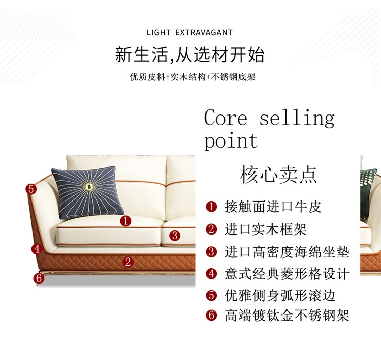 パバサのソファーアメリカンの軽い贅沢な皮のソファーの後、現代の軽い贅沢な本革のソファー港式の小型の部屋型の客間の見本板の間に、アメリカ式の貴妃位の3人の家具があります。イタリアの輸入のトップ牛革の3人です。
